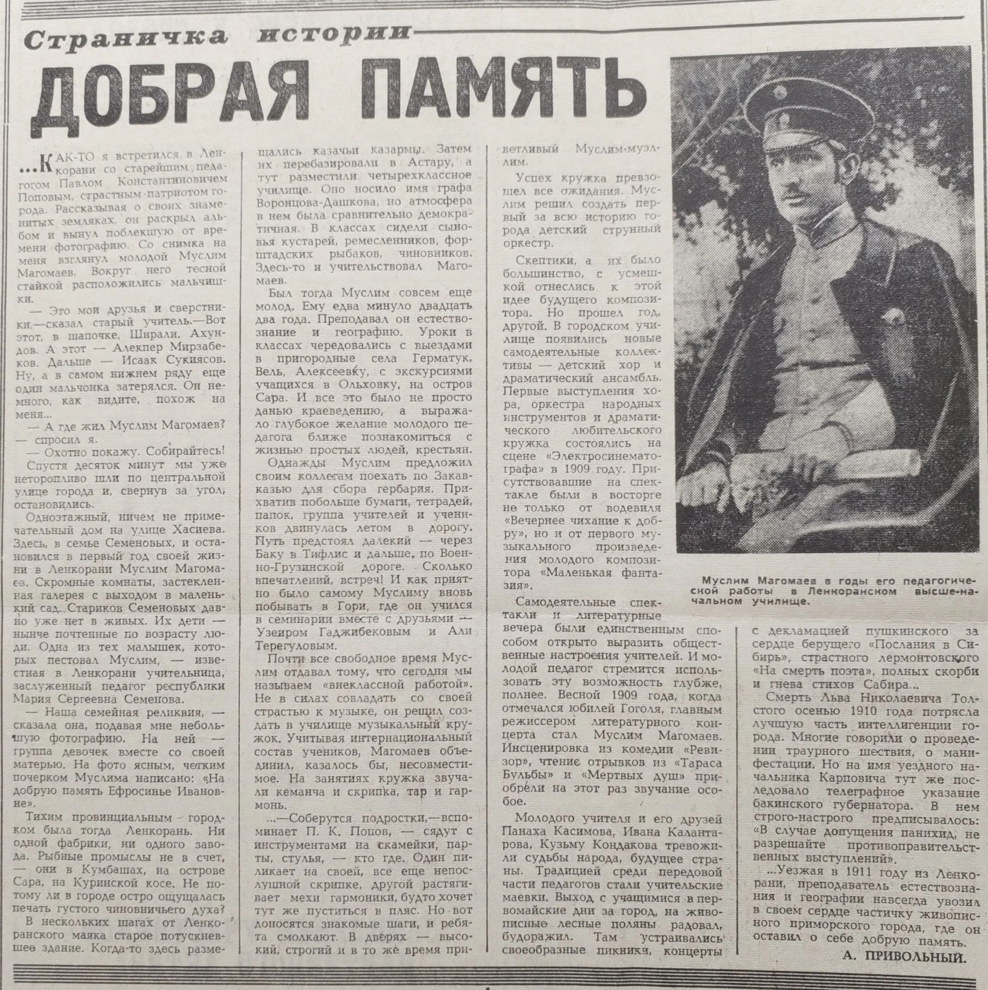 [ А. Привольный. Газета «Бакинский Рабочий», №195, 21 августа 1969 г. ]
